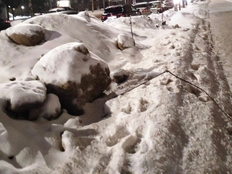 Сваленные на обочины сугробы ломают и калечат деревья, посаженные по программе озеленения города.