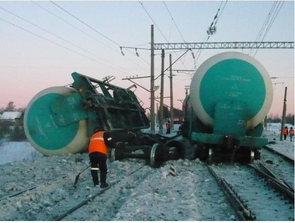 Вагон с дизельным топливом сошел с рельсов в Коми