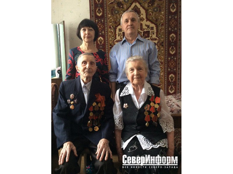 Константин Степанович и Валентина Александровна жили в одной деревне, и знали друг друга с детства. Точнее, ребенком была Валентина, она на 7 лет младше супруга. А когда девочка стала подрастать, Константина забрали на фронт – началась Вторая Мировая война. Встретились они уже после войны, в 1946 году. К тому времени девочка Валя стала уже девушкой «на выданье». Молодые люди стали гулять, ходить в кино. А чтобы посвататься к невесте не с пустыми руками, Константин уехал к брату в Вологду и стал работать штукатуром. А через год ему дали квартиру, в которую он уже мог привезти жену. Свадьбу молодые сыграли 1 марта 1947 года. Ему было 30, ей – 23 года. С тех пор супруги живут душа в душу. Как рассказывают их дети – дома они ни разу не слышали ни бранной речи, ни повышенного тона.