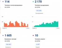 В последнюю неделю суточные приросты постепенно снижаются и больше не превышают 2 тысяч, как раньше. Общее число заболевших с начала пандемии превысило 164 тысячи. Из них 135 тысяч уже выздоровели, в том числе, 2170 за сутки.