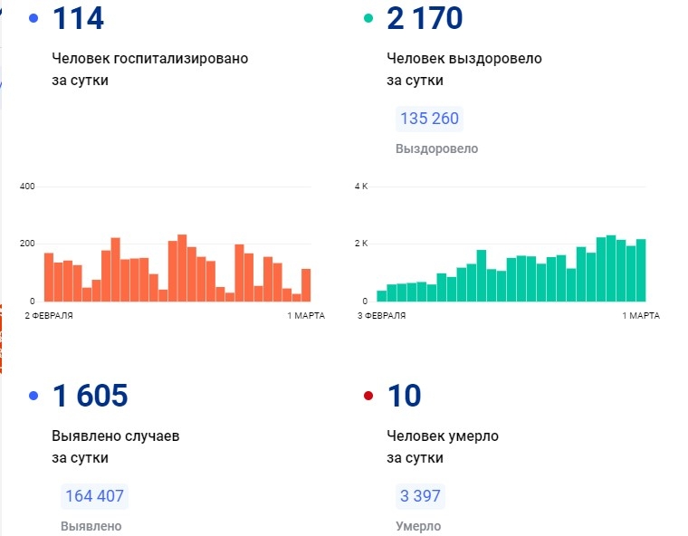 Скончались еще 10 человек. Всего в регионе ковид унес жизни 3397 пациентов. Таковы данные на утро 1 марта.