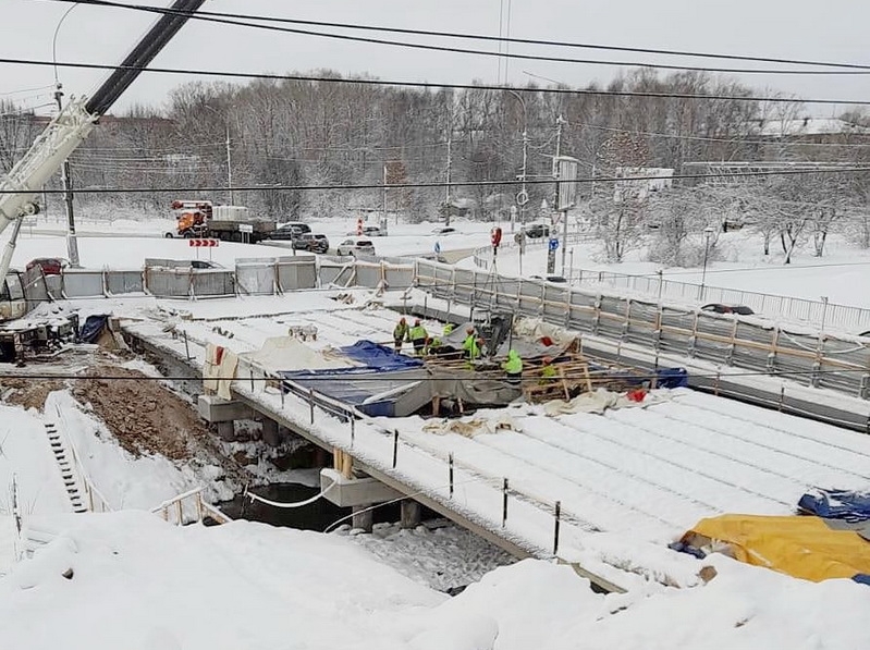 «На 60% работы уже выполнены. Далее строители займутся устройством монолитных участков между балками, это объединение их в общую систему, и переходных плит на подходах к мосту», - рассказал мэр Вологды Сергей Воропанов.