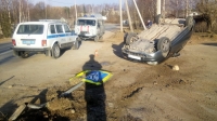 35-летний шофер, проезжая 106-й километр трассы Тотьма — Никольск, не справился с управлением. «Ладу» занесло и швырнуло на обочину, где она врезалась в дорожный знак пешеходного перехода и перевернулась.