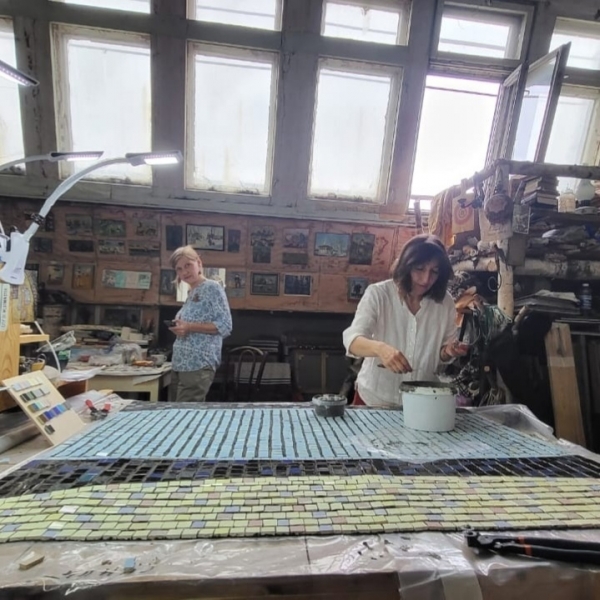 Мастерская школы римской мозаики начала реставрацию панно на главном здании бывшего пионерлагеря.