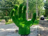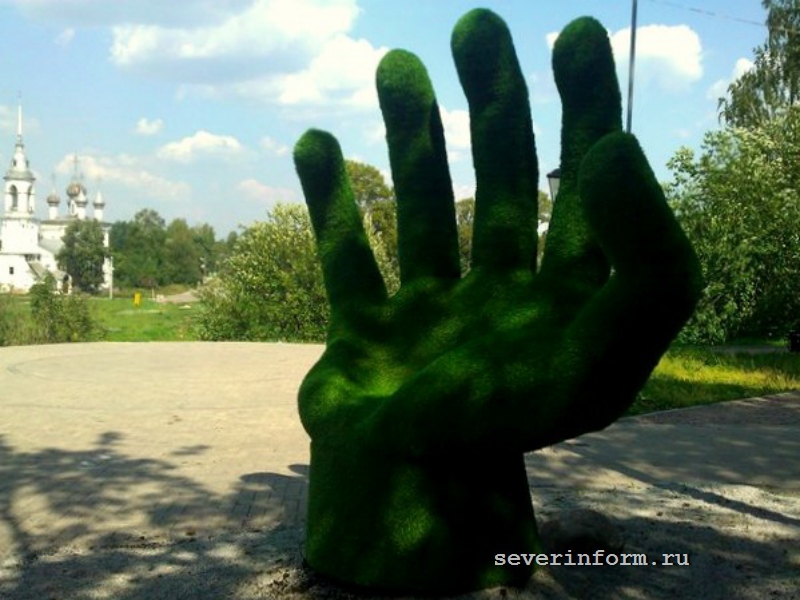 Новый арт-объект в виде двухметровой руки появился в центре Вологды. «Кресло-рука» из искусственных кустов находится на набережной вблизи Софийского собора. Скульптура выполнена в стиле топиарного ландшафтного искусства. Изготовили гигантскую руку в Оренбурге.