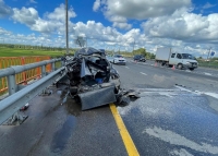 42-летний водитель грузовика Даф не сбросил скорость перед перекрестком и протаранил несколько машин, стоявших на светофоре.