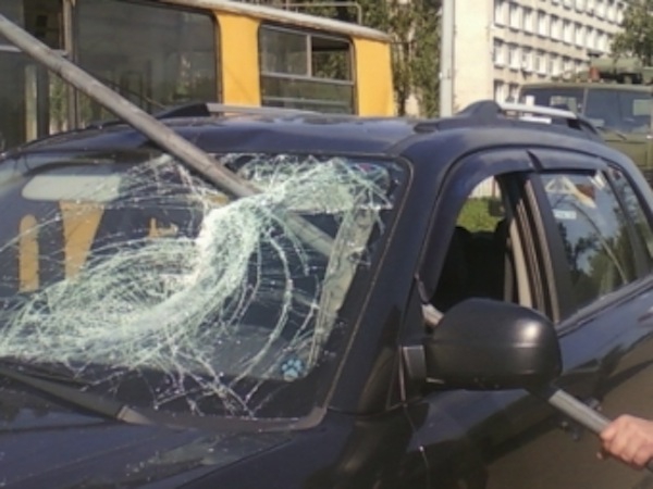 Токоприемник троллейбуса пробил лобовое стекло иномарке