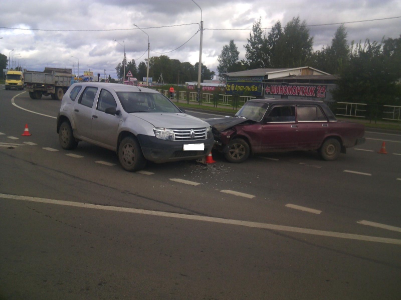 ДТП случилось 31 августа в 11:30 на улице Железнодорожной в Вологде. По данным УГИБДД УМВД России по Вологодской области, 41-летний водитель на "ВАЗ–2107" нарушил правила проезда перекрёстка и столкнулся с автомобилем Renault Duster, за рулём которого находился 66-летний вологжанин.