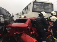 Как пишет cherinfo.ru, водитель «Фольксвагена Пассат» не выдержал безопасную дистанцию и врезался в стоящий «Рено Символ». От удара вторую иномарку откинуло на «ПАЗ» и по касательной задело «Тойоту Лэндкрузер».