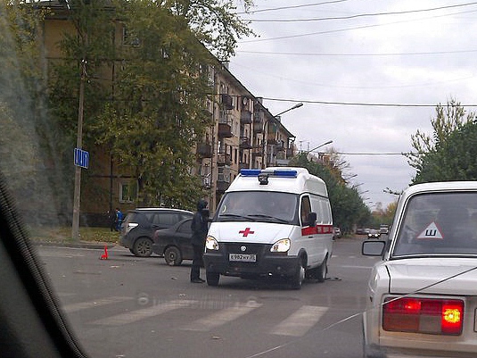 Авария с участием машины "скорой помощи" и легковушки произошла в Череповце. Никто не пострадал.