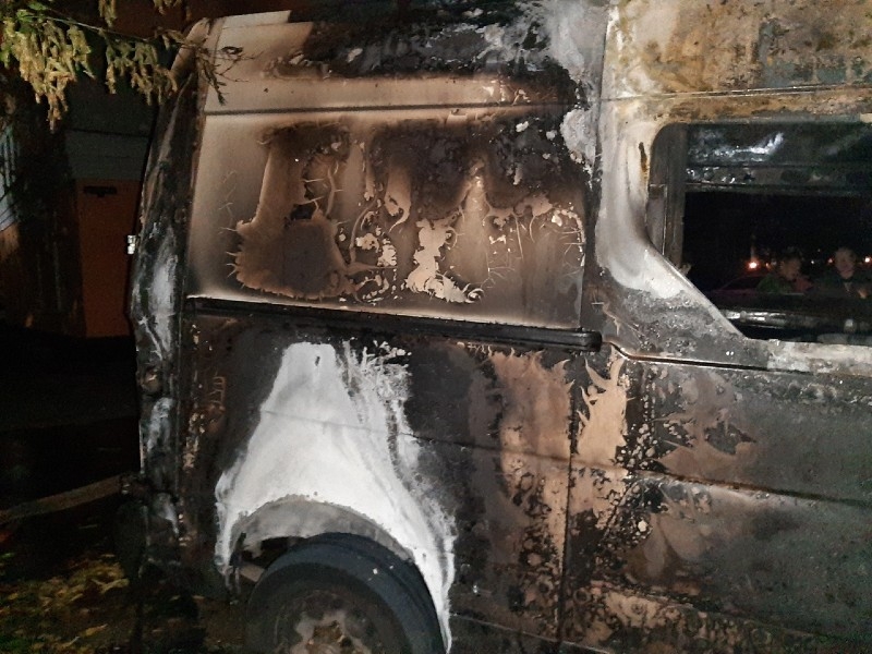 Сгоревший микроавтобус "потащил" за собой два автомобиля и соседний дом