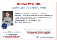 От мужчины нет вестей уже 4 дня. 42-летний Денис Замятин выехал из Череповца в Вологду 27 октября. На следующий день он выходил на связь и сказал, что находится в селе Мосейково. С тех пор о местонахождении череповчанина ничего не известно.