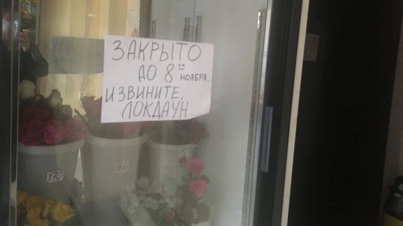 «Закрыто до 8 ноября. Извините, локдаун», - гласит рукописное объявление на одном из цветочных отделов, сообщает ИА «СеверИнформ».