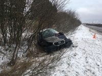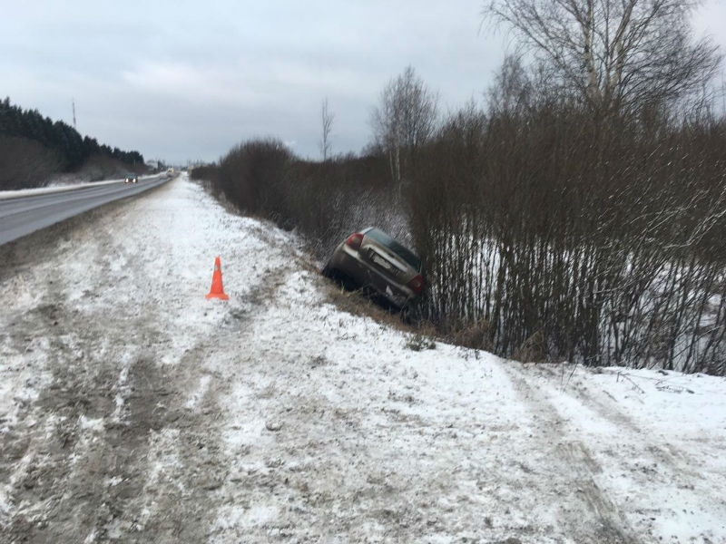 Водитель Датсуна, несмотря на скользкую трассу, решил обогнать впереди идущий Форд. Во время мужчина за рулем Форда на мгновение потерял управление машиной, и ее занесло. Иномарки столкнулись. От удара оба автомобиля вылетели в кювет.