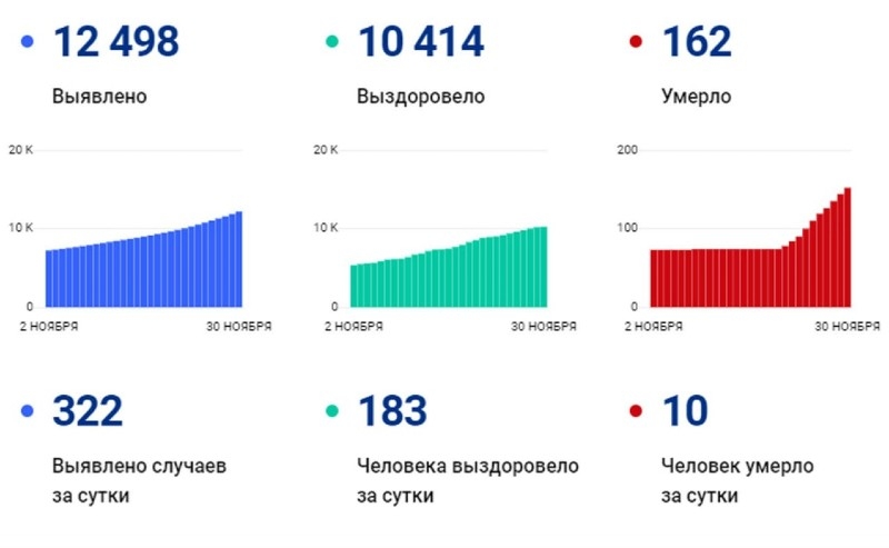 322 человека заболели, 10 скончалось: статистика коронавируса на утро 1 декабря