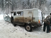 Внедорожник УАЗ столкнулся с пассажирской «Буханкой»