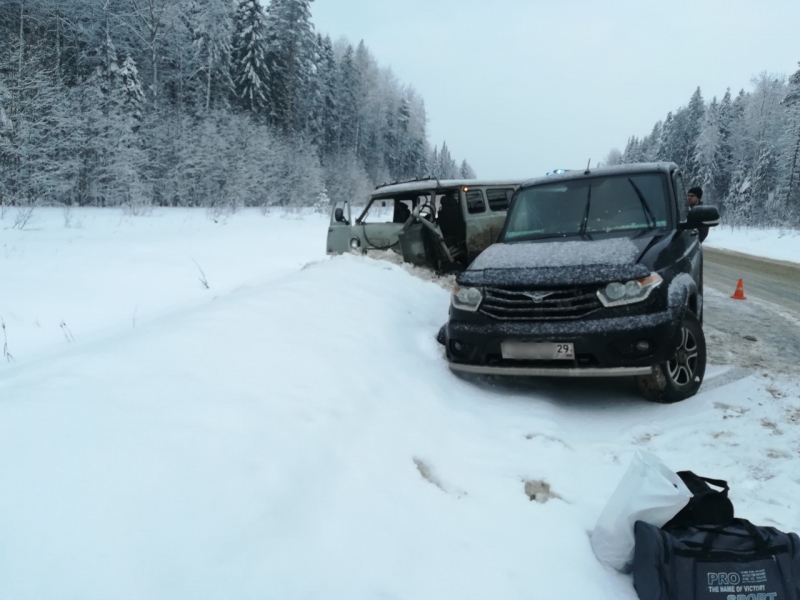 В Великоустюгском районе сегодня, 2 февраля, не поделили дорогу два УАЗа, есть пострадавшие. По информации управления МВД Вологодской области, около 15:15 на 454 км трассы Урень — Шарья — Никольск — Котлас столкнулись на встречной полосе УАЗ «Патриот» с 47-летним водителем и его 19-летним сыном и УАЗ «Буханка» с 39-летним шофером и шестью пассажирами. По предварительной версии, виновник аварии — водитель «Патриота», выскочивший на «встречку» для обгона.