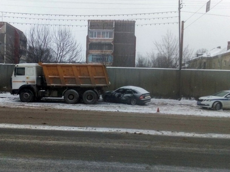 Столкновение легковушки и самосвала в Череповце Фото:ГИБДД