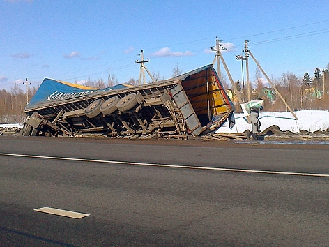 Водитель, житель города Устюжны, превысил допустимую скорость на трассе и не справился с управлением фуры. В результате груженый под завязку «МАЗ» с полуприцепом опрокинулся в кювет.
