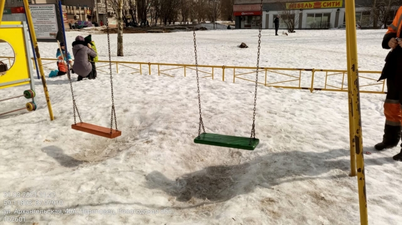 Сейчас проводятся закупки. А пока, чтобы не терять времени, коммунальщики выполняют мелкий ремонт и покраску качелей и горок. Уже уже починили горку во дворе на проспекте Победы и обновили качели на улице Архангельской.