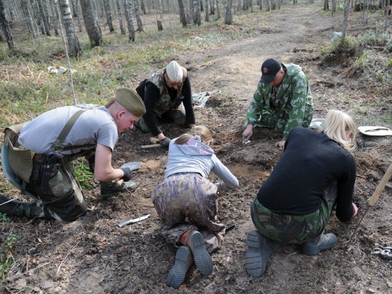 Традиционная экспедиция поисковиков в рамках «Вахты памяти — 2017» проходит в этом году в Кировском районе Ленинградской области. В раскопках принимают порядка 80 человек, среди которых немало студентов, школьников и курсантов. За время работы поисковики нашли останки почти 20 бойцов Советской Армии, а также 2 медали «За оборону Ленинграда» и солдатскую посуду с инициалами. По ним поисковики планируют установить личности погибших солдат.