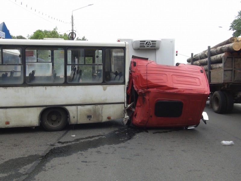 В Вологде грузовик врезался в автобус после столкновения с учебной машиной