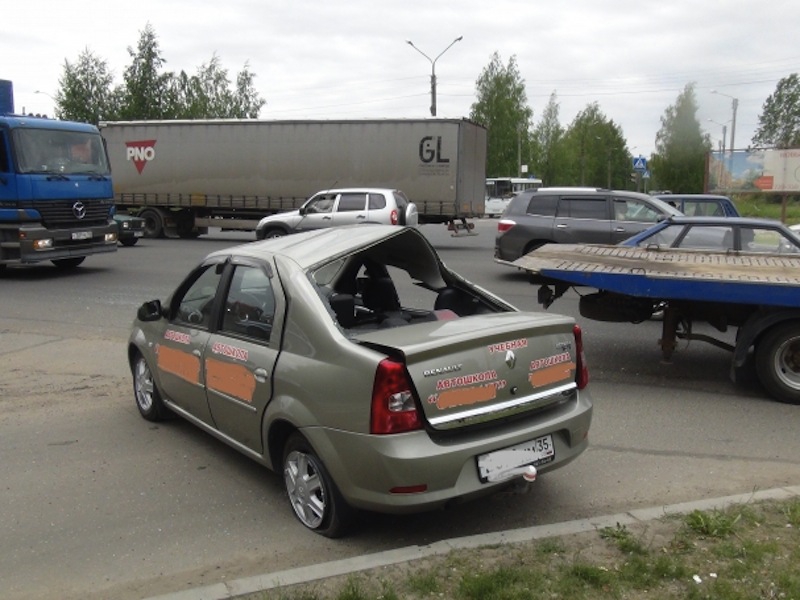 "28-летний мужчина ехал за рулем учебного автомобиля марки "Renault Logan". При повороте налево он не предоставил преимущество грузовику "Mercedes". 31-летний водитель грузового автомобиля пытался избежать столкновения и применил экстренное торможение. В результате этого у транспортного средства откинулась кабина. Неуправляемый грузовик врезался в стоящий на остановке маршрутный автобус, в котором находились 15 пассажиров", - сообщили корреспонденту ИА "СеверИнформ" в пресс-службе УМВД России по Вологодской области.