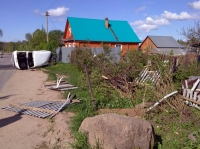 Автомобиль сбил пешехода, протаранил забор и опрокинулся на дорогу