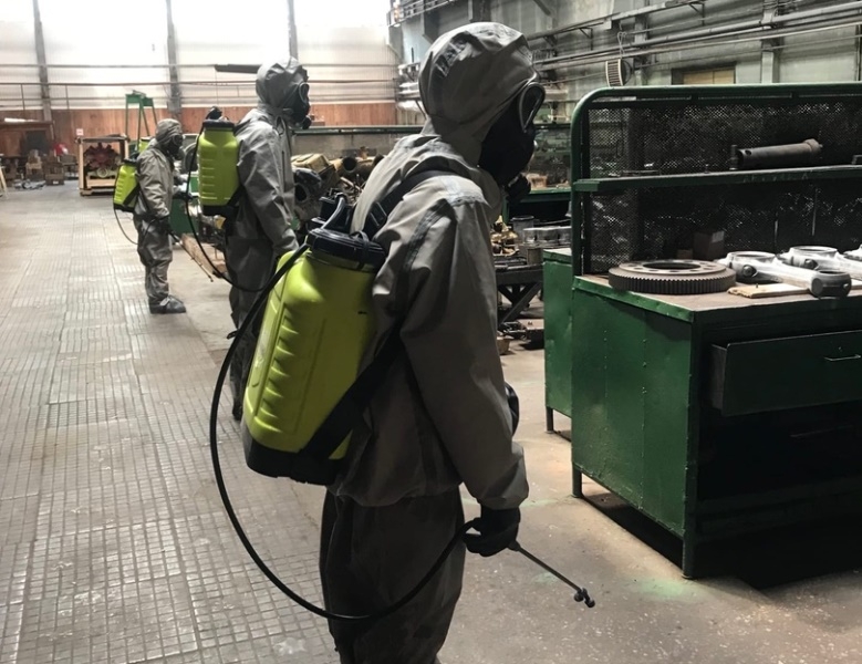 Одновременно с «перчатко-масочным» режимом, термометрией, и локальной дезинфекции, предприятие совместно с военнослужащими отдельной роты радиационной, химической и биологической (РХБ) защиты Балтийского флота и подразделения РХБ защиты соединения морской пехоты провело специальную обработку территории предприятия, цехов и офисных помещений, сообщает ИА "СеверИнформ".