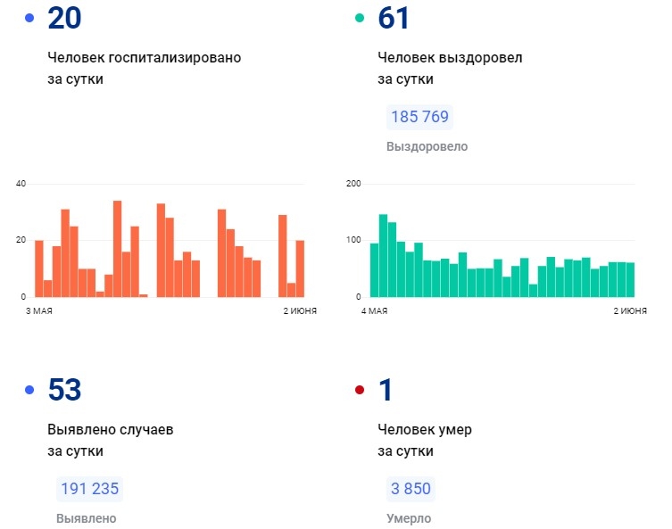 За сутки выявлено еще 53 случая. Выписали с больничного 61 человека. Одному вологжанину не удалось побороть болезнь. Всего с начала пандемии умерло 3850 человек.