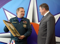 Новый министр МЧС России Владимир Пучков поздравил вологжан с юбилеем города. В честь праздника Владимир Пучков вручил губернатору области Олегу Кувшинникову картину со старинным видом Вологды на Соборную горку и поздравительное письмо. Об этом сообщает ИА «СеверИнформ — Новости Вологодской области». В воскресенье, 1 июля, Владимир Пучков с деловым визитом посетил Северо-Западный региональный центр в Вытегре. Там он осмотрел территорию, провел совещание по созданию комплексной системы природо-техногенной безопасности на территории Вологодской области.
