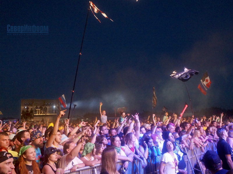 Выступление «SKINDRED» стало финальным в первый день рок-фестиваля. Оно завершилось около двух часов ночи, сообщает ИА «СеверИнформ».