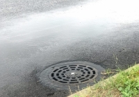 Лужи образуются на двух участках. На заезде к дому №2 по Годовикова причиной тому стал рельеф территории. А на пешеходном переходе в районе Раахе колодец сделан выше нужной отметки, поэтому вода частично не уходит, а скапливается на проезжей части.