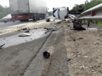 От удара грузовик опрокинулся на проезжую часть. При этом прицеп протаранил дорожный отбойник и вывалился в кювет. По счастливой случайности водитель грузовика не пострадал. Сейчас полицейские выясняют причины и все обстоятельства случившегося, сообщает ИА «СеверИнформ» со ссылкой на пресс-службу УМВД России по Вологодской области.