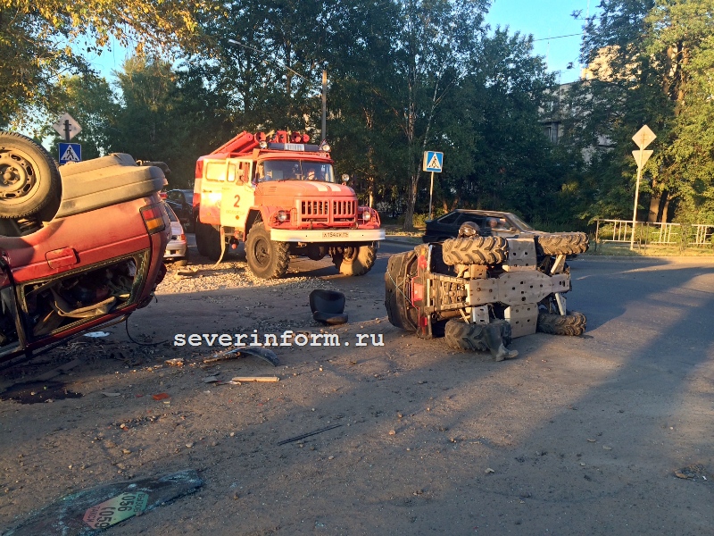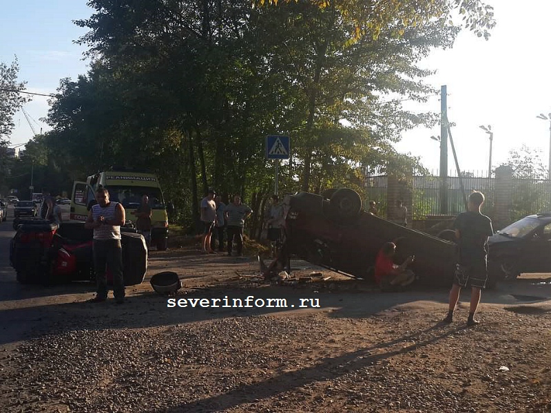 Иномарка и квадроцикл перевернулись после столкновения в Вологде