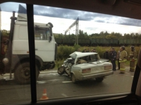 автомобиль «ВАЗ» седьмой модели врезался в грузовик