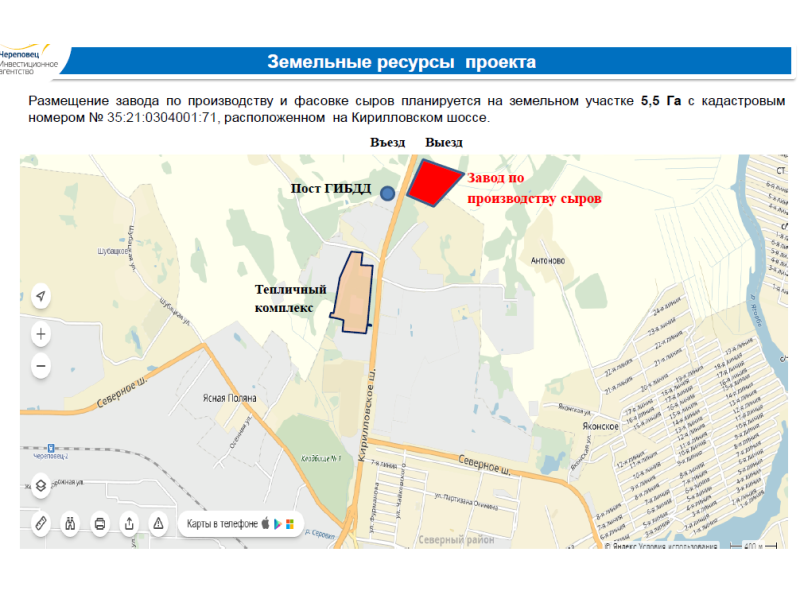 Новый завод по производству сыров появится в Череповце на Кирилловском шоссе напротив поста ДПС
