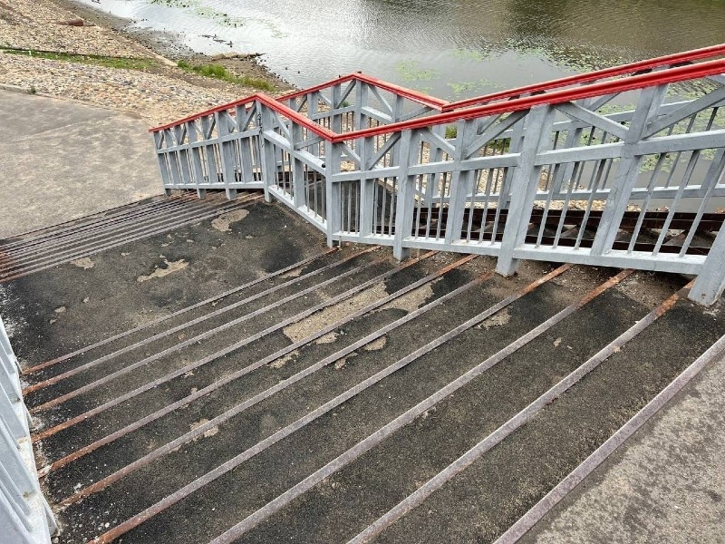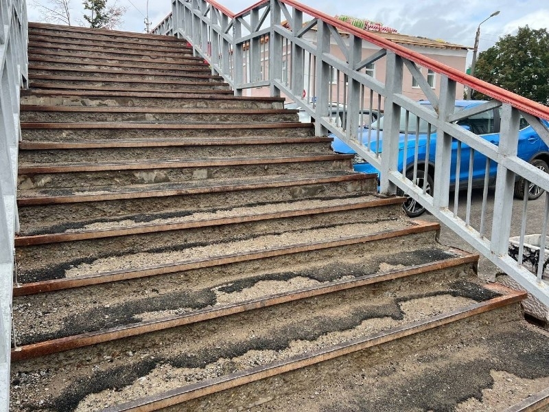 Ступеньки сделаны неровными, часть асфальта уже сбита, железная окантовка местами отходит. Много претензий к ограждениям. Вологжане не раз писали, что они расшатаны до такой степени, что облокотиться на них страшно. А хочется, потому вид красивый.