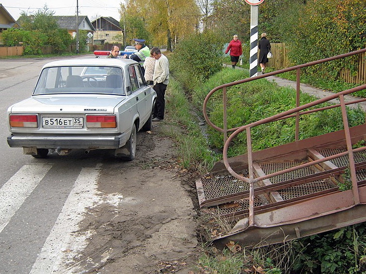 Уходя от столкновения с иномаркой, автомобилист въехал в мост через канаву. Авария произошла утром во вторник, 2 октября, в Шексне, сообщает ИА «СеверИнформ — Новости Вологодской области» со ссылкой на шекснинскую районную газету «Звезда». Мужчина на «ВАЗе» седьмой модели выезжал с улицы Шекснинской на Октябрьскую. В это время из встречного потока выскочила иномарка, которой управляли девушка. Чтобы избежать столкновения, мужчине пришлось съехать в кювет. Там машина врезалась в железный мостик. Никто из участников аварии не пострадал. Но у «семерки» сильно повреждено правое крыло. А перила железной конструкции почти накрыли пандус мостика. Поэтому женщины с детьми теперь вынуждены терпеть неудобства при переходе дороги.