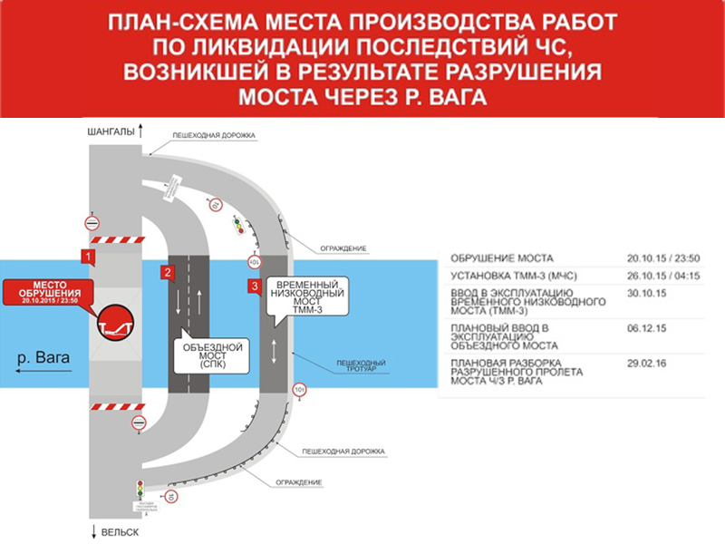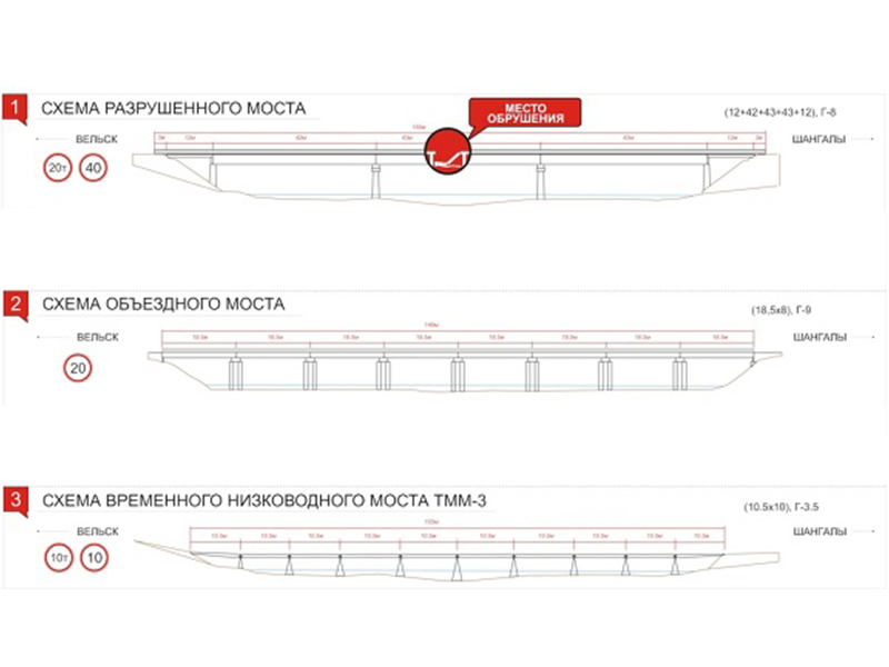 Кроме того, специалисты «Архавтодора» разработали план-схему расположения тяжелого механизированного моста и будущего временного объездного моста через Вагу: