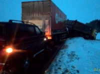 Четыре грузовика и УАЗ Патриот столкнулись под Шексной