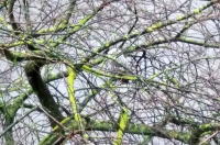 Птица обосновалась на дереве во дворе дома № 149 по проспекту Победы.