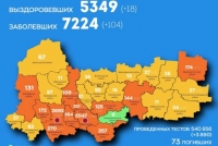 Всего зафиксировано 7224 случая, из них активных - 1802. Выздоровели 5349 человек, за сутки 18.