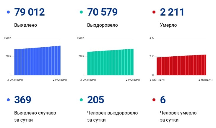 Всего на Вологодчине за время пандемии скончались 2211 инфицированных. Такие данные на утро 2 ноября приводит сайт стопкоронавирус.рф.
