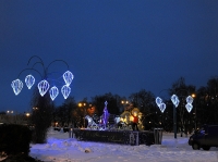 Вологде. Начиная с сегодняшнего дня световую бахрому, гирлянды «Тающие сосульки» и «Звездное небо», цветные прожекторы, светодинамический фонтан и фигуру «Дед Мороз на тройке лошадей» будут включать вместе с уличным освещением после 16:00. Сверкать огнями будет и аллея на улице Пушкинской.