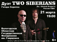 Добавим, что в Вологде концерт «Two Siberians» состоится 21 марта. Начало в 19 часов, сообщает ИА «СеверИнформ». Организатор концерта в Вологде - фирма «Овация».