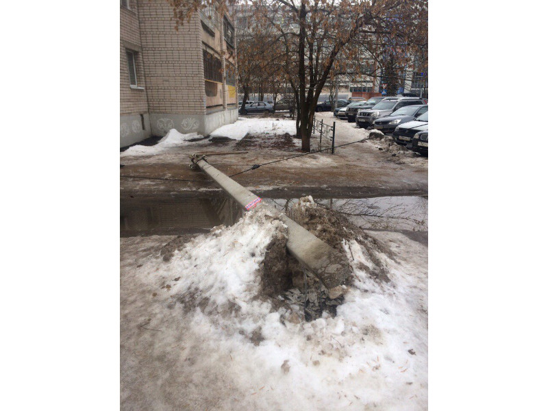 В Вологде во дворе дома №11 на улице Чехова у 32-ой школы упал электрический столб. Об этом ИА "СеверИнформ" сообщили очевидцы.
