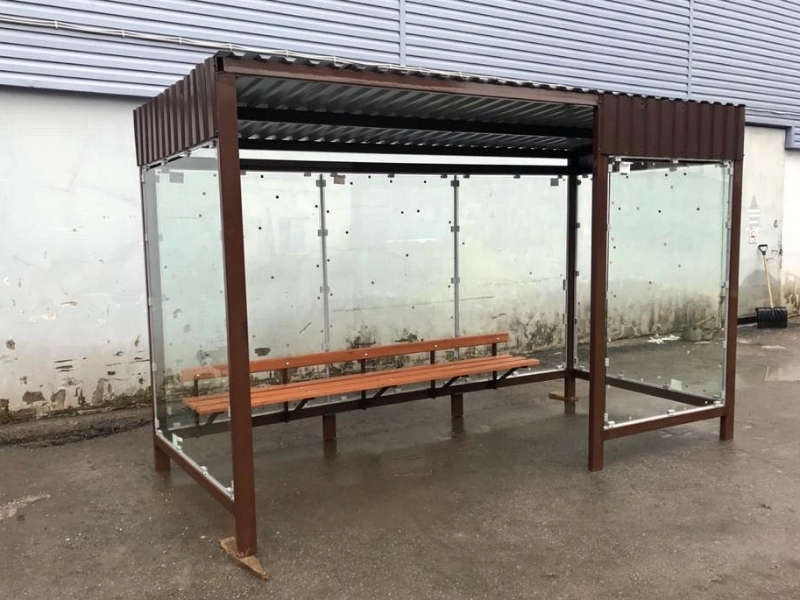 Специалисты изготовили опытный павильон. Пробный вариант скоро появится в городе. Каркас сделан из металлического профиля, крыша - из профлиста. В боковых стенках установлено стекло "триплекс".