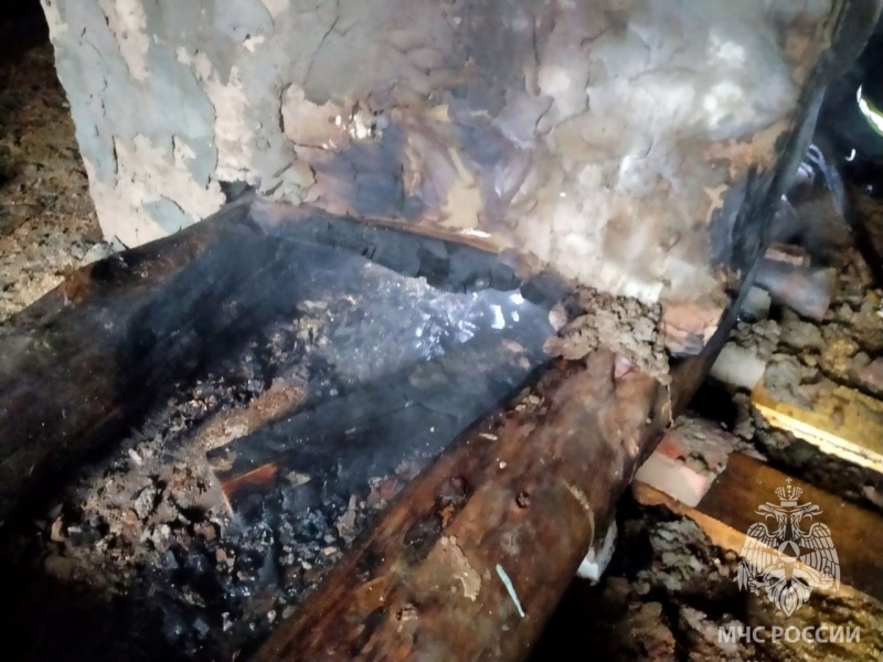 На вызов приезжали 7 человек и 2 единицы техники. Огонь повредил чердачное перекрытие. Причиной стал недостаток изготовления дымовой трубы.