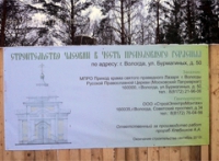 На завершение строительства часовни преподобного Герасима в Вологде необходимо более 1,7 миллиона рублей